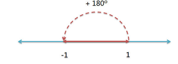 这根数轴的正向部分,可以绕原点旋转。显然,逆时针旋转180度,+1就会变成-1。