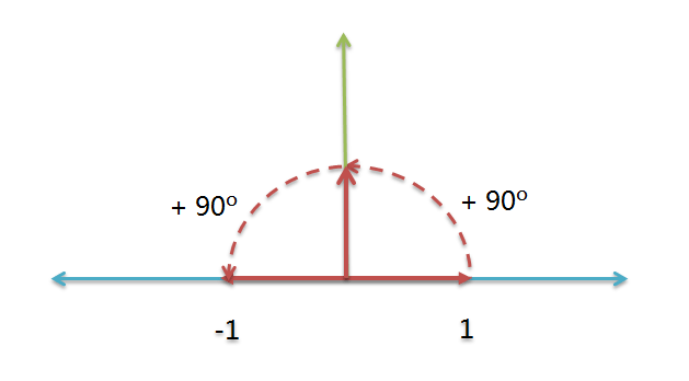 (+1) * (逆时针旋转90度) * (逆时针旋转90度) = (-1)