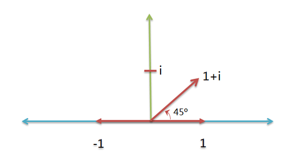 只要确定横坐标和纵坐标,比如( 1 , i ),就可以确定某个实数的旋转量(45度)。