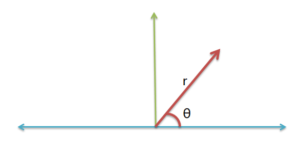 任何复数 a + bi,都可以改写成旋转半径 r 与横轴夹角 θ 的形式。