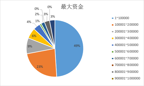 如你所见,60% 的赌徒会在 5 天左右输光光,而半个月过后,还在继续的赌徒只剩 17% ,如果你足够努力,闯入三甲,那你账面上最多时会超过 100 万资金。