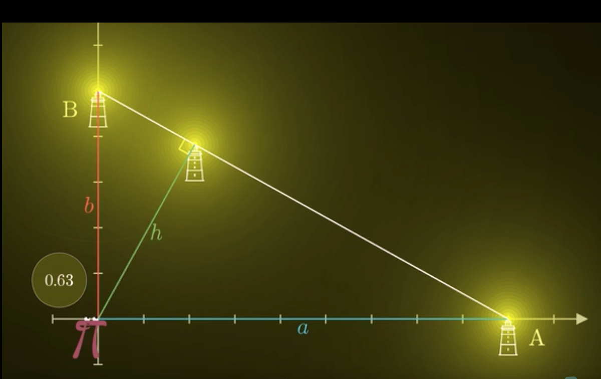 上图中在原点接收到的原始灯塔(与原点距离为h)的亮度等于A,B两灯塔之和