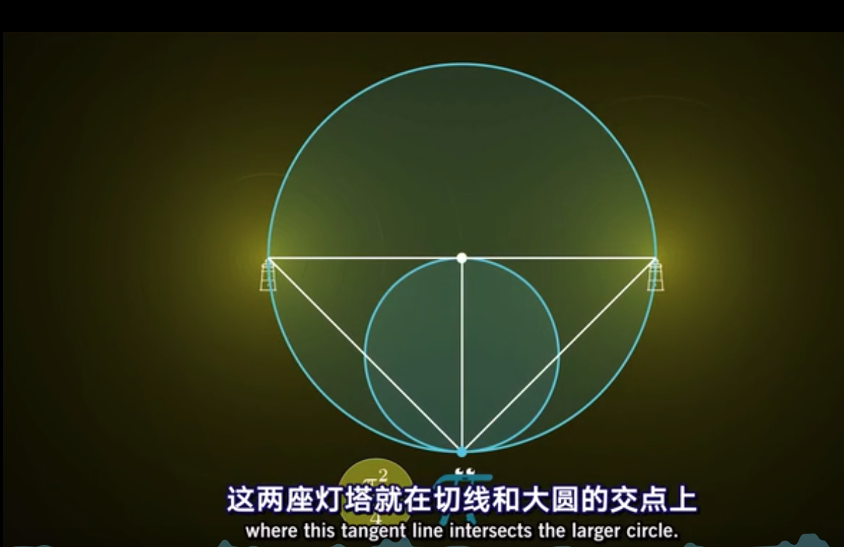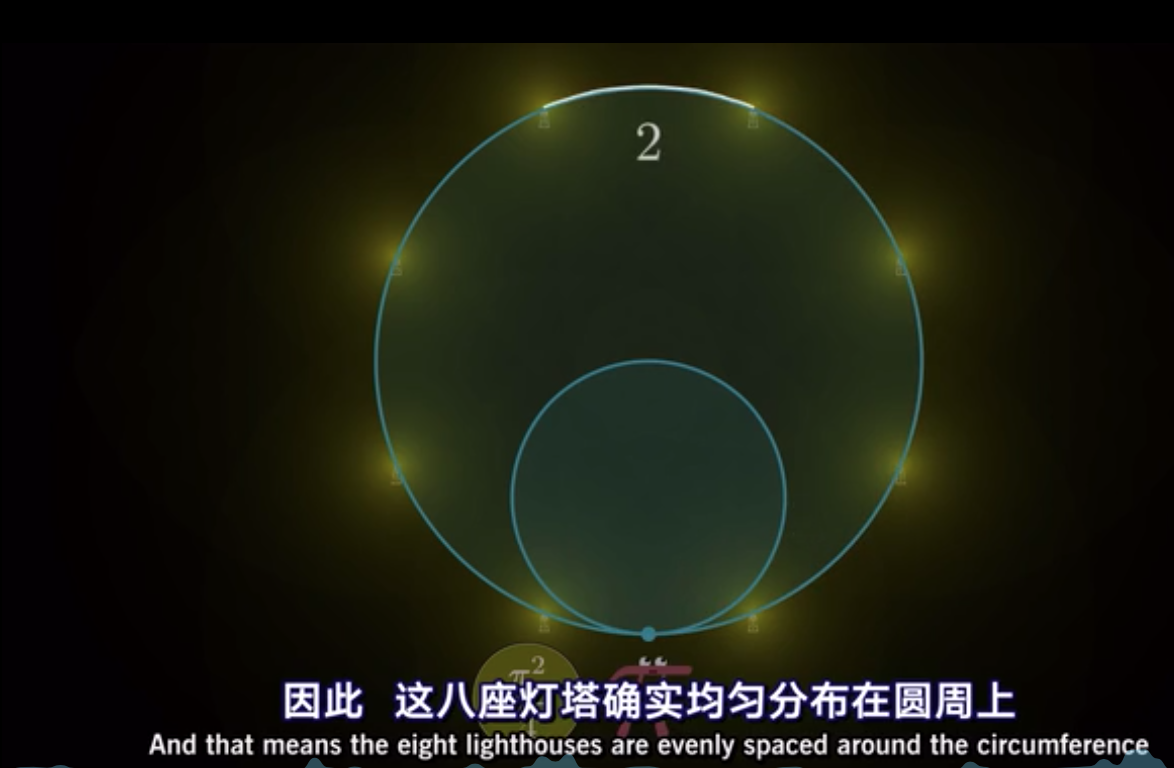 注意:这里新的两座灯塔距离光线接收器的圆弧长度仍然为1.