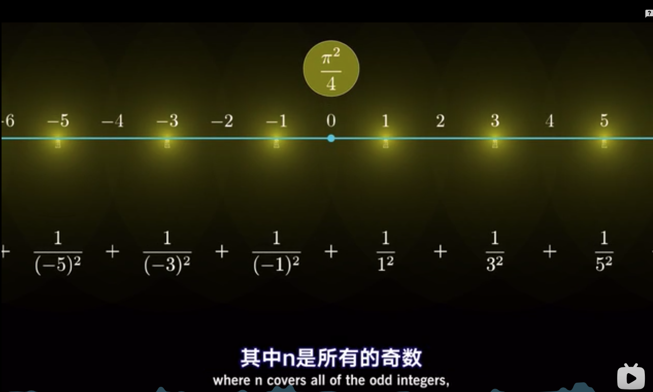 \(\cdots+\frac{1}{(-5)^2}+\frac{1}{(-3)^2}+\frac{1}{(-1)^2}+\frac{1}{1^2}+\frac{1}{3^2} +\frac{1}{5^2}+\cdots = \frac{\pi^2}{4} \\ \frac{1}{1^2}+\frac{1}{3^2} +\frac{1}{5^2}+\cdots= \frac{\pi^2}{8} \tag{1}\)